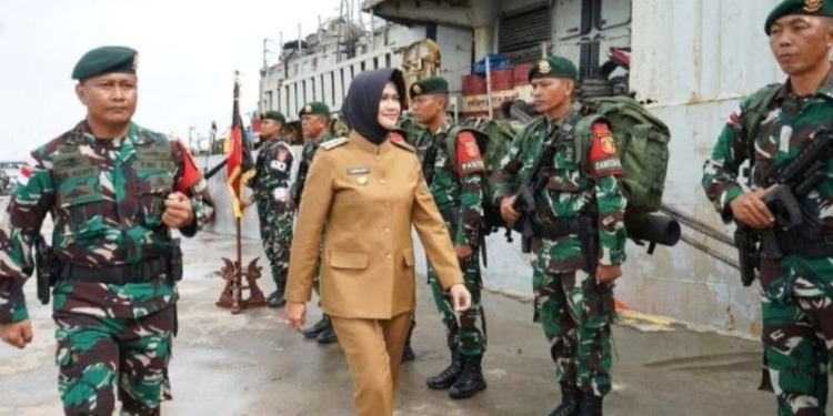 NUNUKAN – Bupati Nunukan, Hj. Asmin Laura Hafid S.E, M.M, Ph.D menyambut kedatangan Satgas Pamtas dari Batalyon Artileri Medan 11/Guntur Geni di dermaga Pelabuhan Internasional Tunontaka Nunukan, Minggu (25/8/2024).