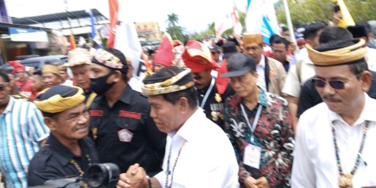 Mengenakan kemeja warna putih dan singal, Zainal Paliwang bersama pasangannya, Ingkong Ala tiba di kantor KPU Kaltara sekira pukul 11.06 Wita, usai menggelar deklarasi.