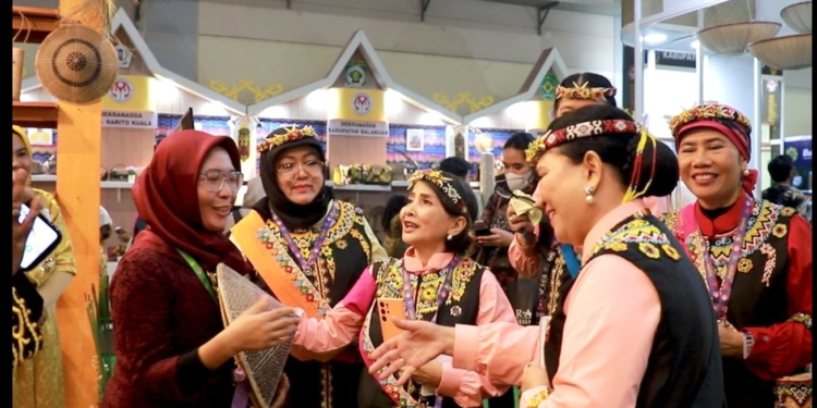 Petinggi Dekranas pusat silih berganti mengunjungi booth Kaltara dan Malinau terakhir terlihat Endang Budhi Karya serta Zara Murzandina Budi Arie yang turut melihat dan membeli kriya dari Kaltara. (dkisp)