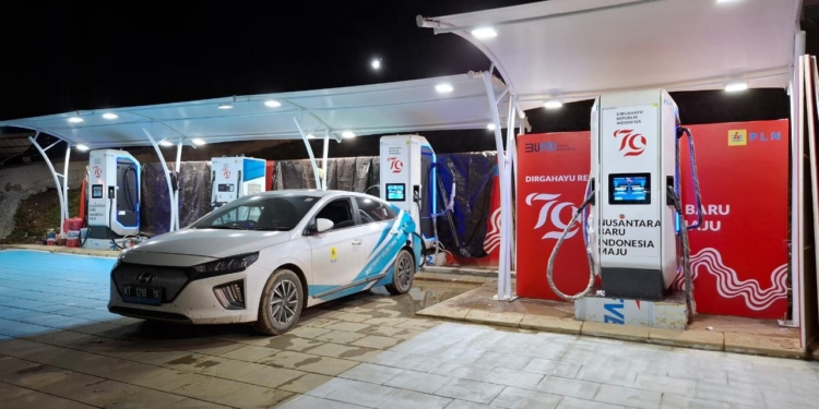 NUSANTARA – Dalam rangka mendukung penggunaan kendaraan listrik pada peringatan Hari Ulang Tahun (HUT) Republik Indonesia (RI) ke-79 di Ibu Kota Negara (IKN) Nusantara, PT PLN (Persero) Unit Induk Distribusi Kalimantan Timur dan Kalimantan Utara (UID Kaltimra) menghadirkan 18 Unit Stasiun Pengisian Kendaraan Listrik Umum (SPKLU).