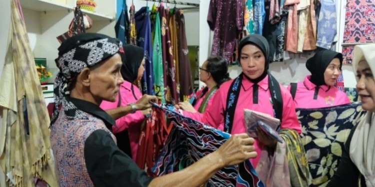 Tak sampai disitu, Para Bhayangkari juga ikut melukis batik yang sudah ditenun dan siap dilukis. Membatik adalah hal yang tidak bisa sembarang dilakukan dan hanya untuk orang-orang yang mempunyai keterampilan khusus agar bisa memberi hasil yang terbaik.