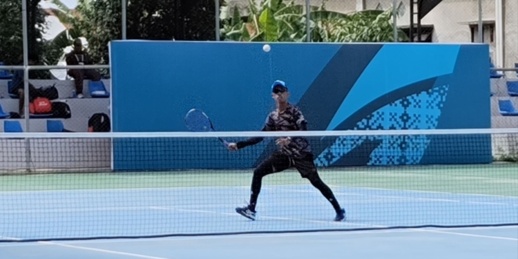 Marie Muhammad lolos perempat final nomor tinggal putra cabang soft tenis PON XXI/2024. (foto: jendelakaltara.co)
