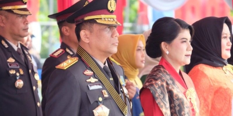 TARAKAN – Kepala Kepolisian Daerah (Kapolda) Kalimantan Utara (Kaltara), Irjen Pol Hary Sudwijanto menghadiri upacara Hari Ulang Tahun (HUT) Tentara Nasional Indonesia (TNI) ke-79 di Lanud Anang Busra, Tarakan, Sabtu (5/9/2024).