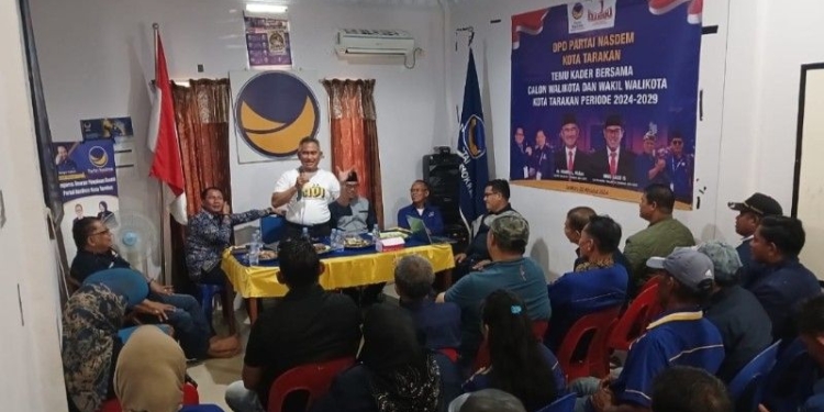 Calon Wali Kota Tarakan Nomor Urut 1, dr. H. Khairul M.Kes menyampaikan arahannya di hadapan kader Partai NasDem. (foto: IST)