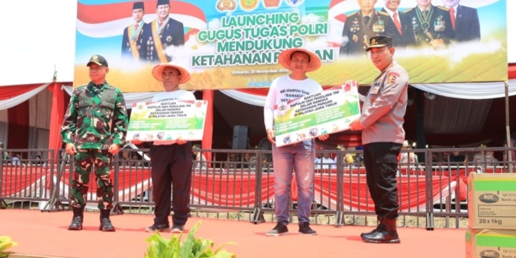 JAKARTA – Kapolri, Jenderal Pol Listyo Sigit Prabowo bersama Panglima TNI, Jenderal Agus Subiyanto menghadiri peluncuran atau launching Gugus Tugas Polri dalam mendukung ketahanan pangan di Desa Bulang, Kecamatan Prambon, Kabupaten Sidoarjo, Jawa Timur, Rabu (20/11/2024).