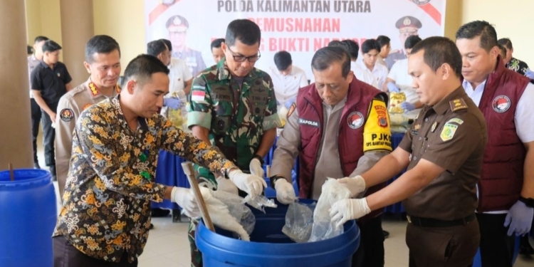 TANJUNG SELOR – Kepolisian Daerah (Polda) Kalimantan Utara (Kaltara) kembali memusnahkan barang bukti sabu. Kali ini sebanyak 74 Kilogram.