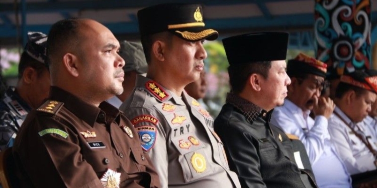 Direktur Binmas Polda Kaltara, Kombes Pol Tri Handako Wijaya Putra (dua dari kiri) hadiri upacara Hari Desa Nasional. (foto: Humas Polda Kaltara)