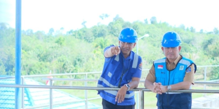 Direktur Perumda Air Minum Tirta Alam Tarakan, Iwan Setiawan (kiri) bersama Wali Kota Tarakan, dr. H. Khairul M.Kes meninjau IPA Kampung Satu. (foto: IST)