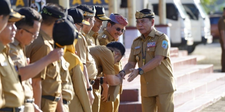 TANJUNG SELOR – Gubernur Kalimantan Utara (Kaltara) Dr. H. Zainal Arifin Paliwang, S.H., M.Hum memimpin apel perdana dilingkup Pemerintahan Provinsi Kaltara usai liburan Hari Raya Idulfitri 1446 Hijriah, Selasa (8/4/2025).