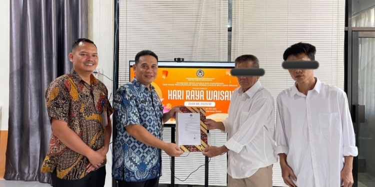 TARAKAN – Bertempat di ruang pimpinan, Kepala Lembaga Pemasyarakatan (Lapas) Kelas IIA Tarakan, Jupri, menyerahkan Surat Keputusan (SK) Remisi Khusus (RK) Hari Raya Waisak 2569 BE/2025 Masehi kepada Warga Binaan Pemasyarakatan (WBP), Senin (12/5/2025).