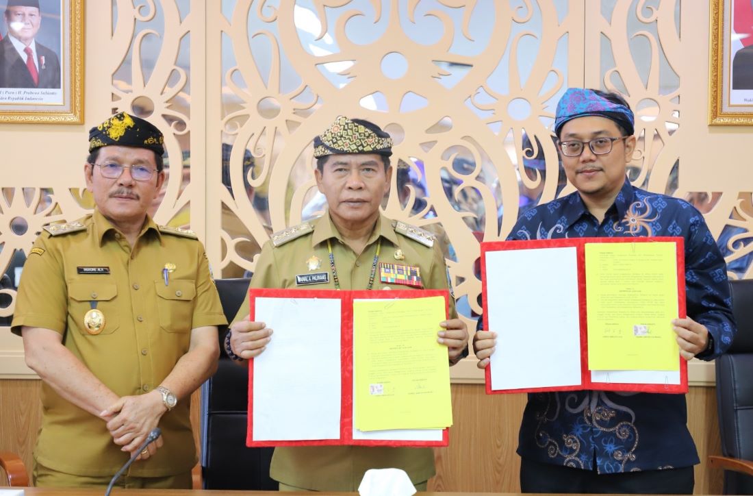 TANJUNG SELOR – Gubernur Kalimantan Utara (Kaltara), Dr. H. Zainal A. Paliwang, S.H., M.Hum didampingi Wakil Gubernur (Wagub), Ingkong Ala, SE., M.Si melakukan Penandatanganan Kesepakatan Bersama dan Perjanjian Kerjasama dengan Plt. Kepala Perwakilan Badan Pengawasan Keuangan dan Pembangunan (BPKP) Provinsi Kaltara Sindu Senjaya Aji, Ak., M.M.i.