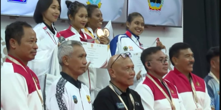 KUDUS – Agustina Idom tidak bisa menyembunyikan rasa gembirannya usai meraih medali perak di Pekan Olahraga Nasional (PON) Bela Diri 2025.