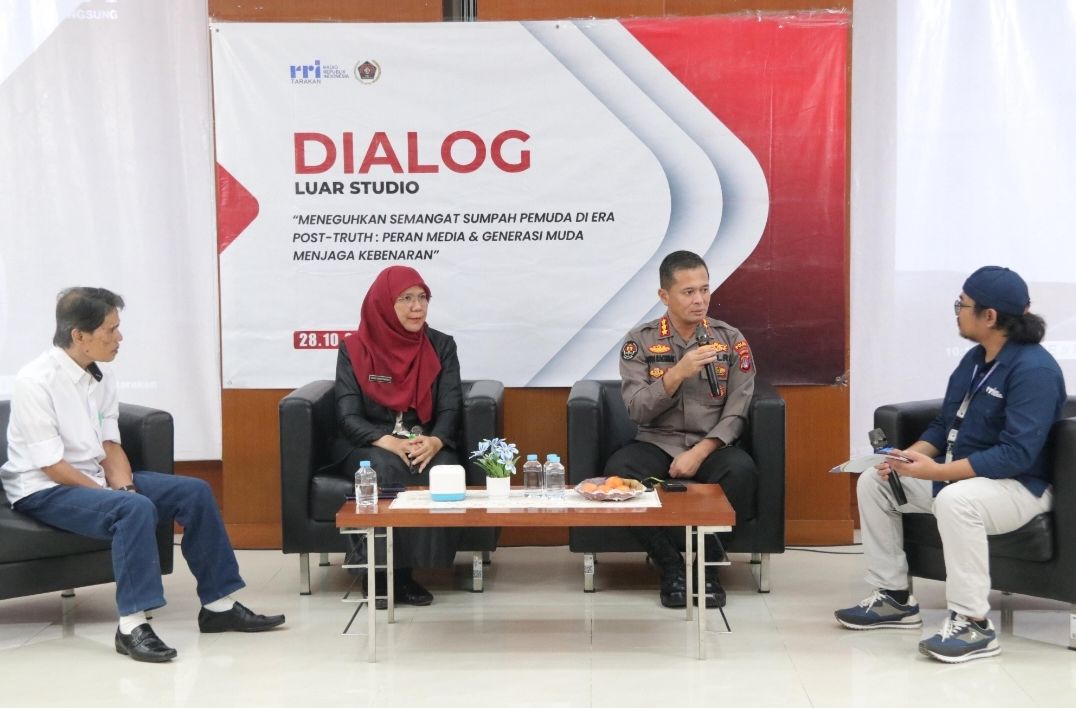 Dialog menghadirkan sejumlah narasumber. Antara lain Kepala Bidang Humas Polda Kalimantan Utara, Kombes Pol. Budi Rachmat, S.I.K., M.Si., Kepala Dinas Komunikasi, Informatika, Statistik, dan Persandian Kota Tarakan Endah Sarastiningsih, S.Pd., M.Pd., serta Ketua Dewan Kehormatan PWI Kaltara H. Rachmat Rolau.
