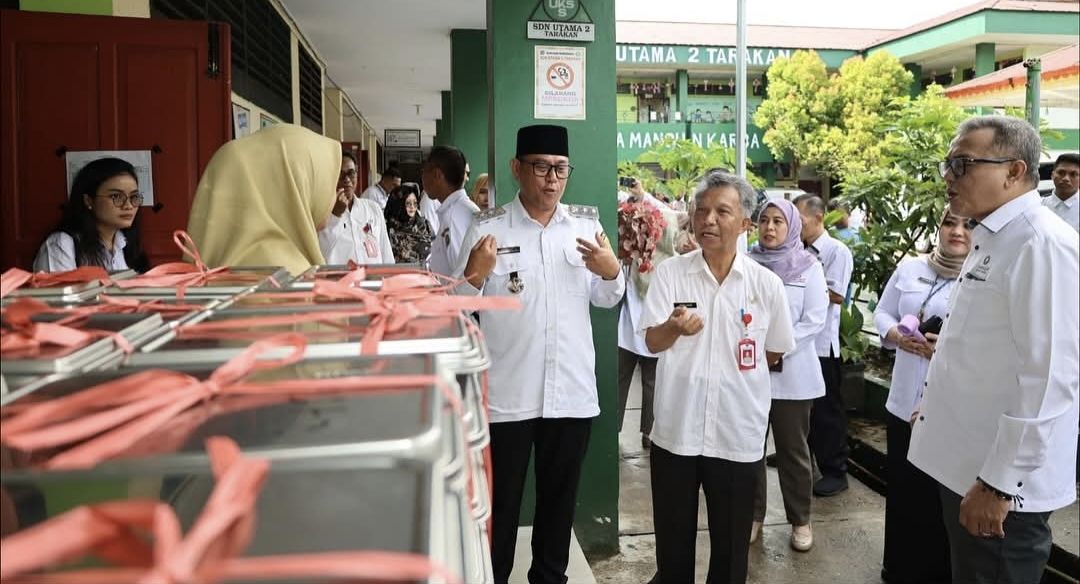 TARAKAN – Wakil Wali Kota Tarakan, Ibnu Saud Is mendampingi kunjungan kerja Anggota Ombudsman Republik Indonesia, Indraza Marzuki Rais memantau Makan Bergizi Gratis (MBG) dan dapur Satuan Pelayanan Pemenuhan Gizi (SPPG) di Tarakan, Rabu (22/10/2025).