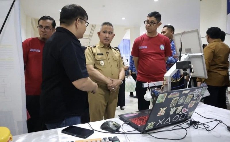 Wali Kota Tarakan (tengah) melihat karya mahasiwa yang ditampilkan pada Borneo Edu Fest #3 di UBT. (foto: Bagian Prokopim Setda Tarakan)