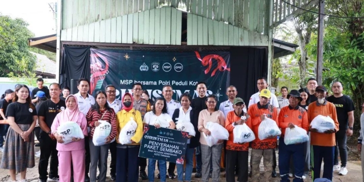 TARAKAN – Sebanyak 240 paket sembako dibagikan kepada petugas kebersihan di momentum perayaan Natal 2025.