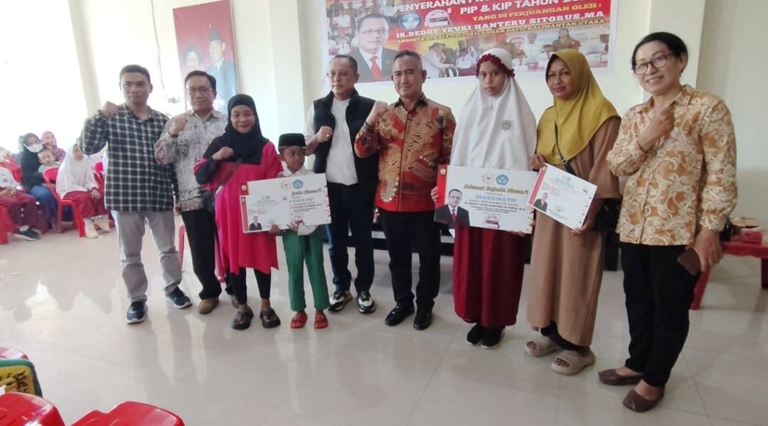TARAKAN – Anggota Dewan Perwakilan Rakyat Republik Indonesia (DPR RI), Deddy Yevri Hanteru Sitorus menyerahkan beasiswa