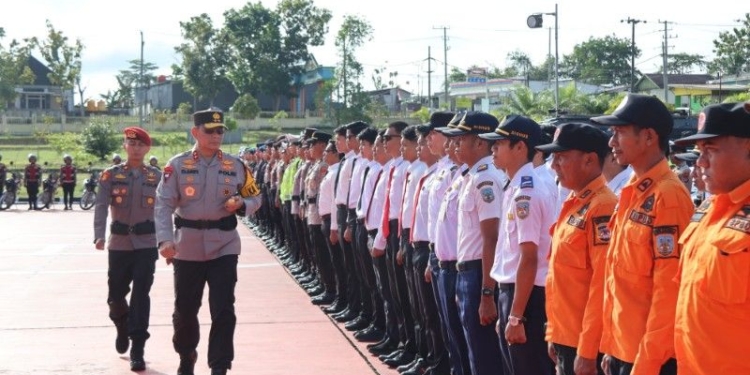 Apel ini melibatkan personel TNI-Polri serta unsur pemerintahan seperti BPBD Provinsi, Dinas Kesehatan, dan Dinas Perhubungan.