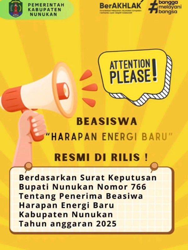 Rilis nama-nama penerima tersebut tertuang dalam Surat Keputusan (SK) Bupati Nunukan Nomor 766 tentang Penerima Beasiswa “Harapan Energi Baru” Pemerintah Kabupaten Nunukan Tahun Anggaran 2025.