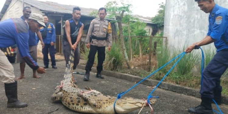 Penangkapan buaya berlangsung pada Rabu pagi (21/1/2026) yang dilakukan oleh pekerja Penangkaran Buaya Persemaian.