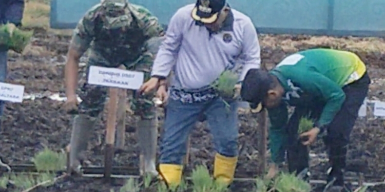 “Hari ini kita memulai tanam perdana Untuk cetak sawah yang sudah kita lakukan beberapa waktu yang lalu hari ini secara simbolis kita lakukan di lahan seluas 15 hektar selebihnya nanti akan dilanjutkan oleh Brigade melalui berbagai cara ada yang tanam pindah ada juga yang tabela ada juga yang pakai drone. Karena memang cukup luas,” ujar wali kota kepada awak media.