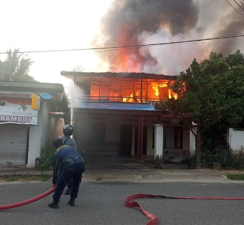 NUNUKAN – Warga Nunukan dibuat panik dengan kebakaran di Jalan Rimba RT 09, Nunukan Tengah, Minggu (11/1/2026). Rumah dua tingkat dilahap si jago merah.