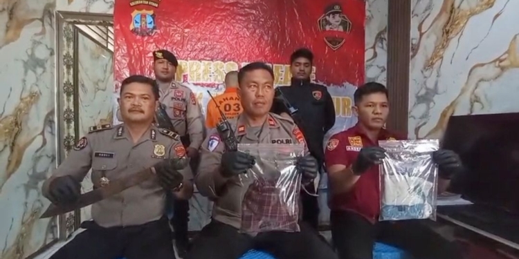 Dalam penanganan kasus ini, polisi turut mengamankan sejumlah barang bukti berupa satu bilah parang bergagang karet, satu lembar kaos lengan pendek warna putih biru, serta satu lembar celana pendek bermotif kotak-kotak milik korban.