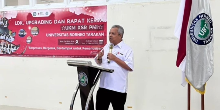TARAKAN – Ketua Palang Merah Indonesia (PMI) Tarakan, H Hamid Amren S.E, menghadiri pembukaan Latihan Dasar Kepemimpinan (LDK), Upgrading dan Rapat Kerja (Raker) Unit Kegiatan Mahasiswa (UKM) Korps Sukarelawan (KSR) Universitas Borneo Tarakan (UBT).