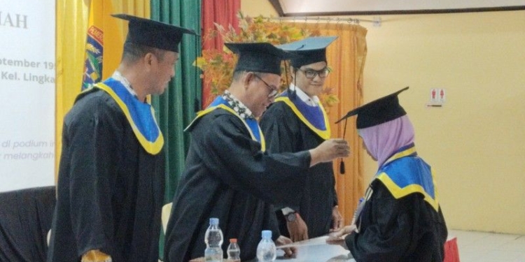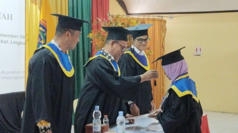 Prosesi wisuda berlangsung di Gedung Serbaguna Kantor Wali Kota Tarakan, Kamis (12//2/2026). Layaknya wisuda pada umumnya, para wisudawan dan wisudawati mengenakan toga dan diwisuda.