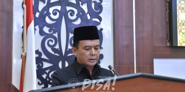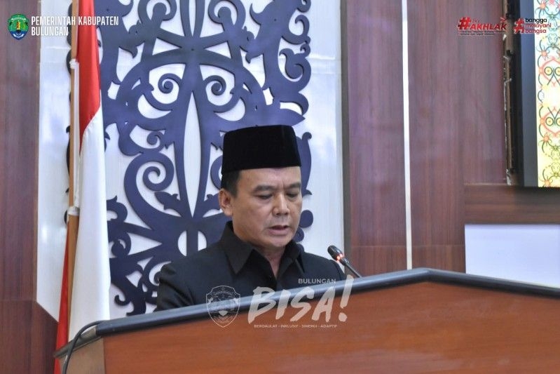 TANJUNG SELOR – Wakil Bupati (Wabup) Bulungan, Kilat, A.Md menyampaikan jawaban pemerintah terhadap pemandangan umum anggota Dewan atas 7 rancangan peraturan daerah (raperda) dalam rapat paripurna di Ruang Sidang Datu Adil DPRD Bulungan pada Senin (21/4/2026).