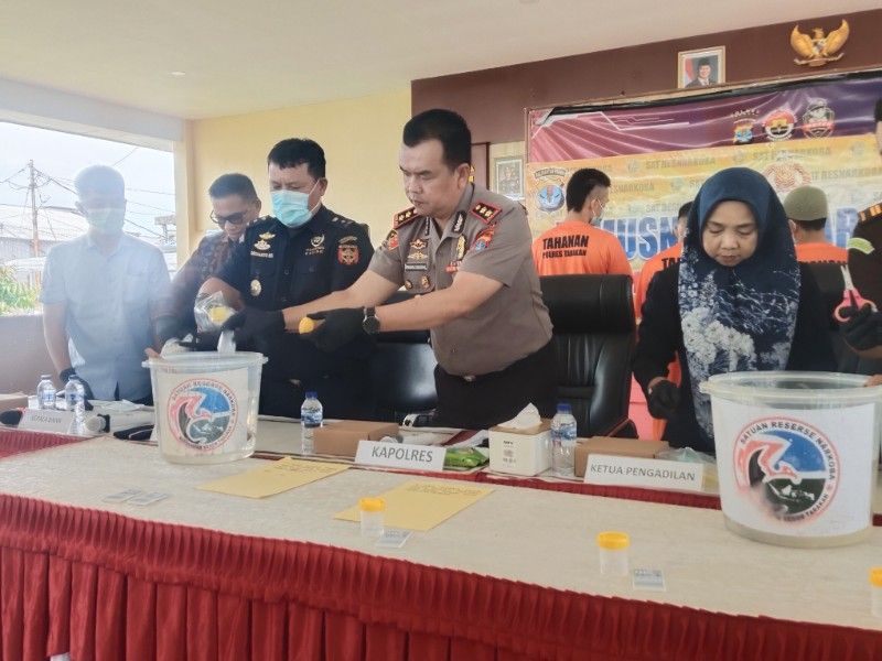 TARAKAN – Kepolisian Resort Polres Tarakan memusnahkan 796 gram sabu yang merupakan barang bukti hasil penindakan sejumlah perkara yang ditangani baik dari Sareesnarkoba Polres Tarakan maupun Ditpolairud Polda Kaltara.