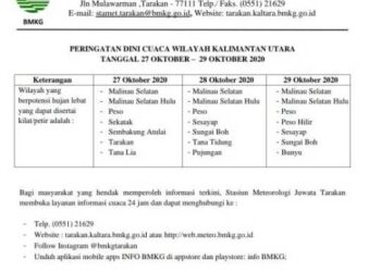 Read moreDetailsTARAKAN – Badan Meteorologi, Klimatologi, dan Geofisik (BMKG) Tarakan mengeluarkan peringatan dini cuaca di Kalimantan Utara (Kaltara) untuk tiga hari...