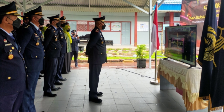 Pegawai Lembaga Pemasyarakatan (Lapas) Kelas IIA Tarakan turut mengikuti upacara tersebut secara virtual, dipimpin langung Arimin selaku Kepala Lapas Tarakan.