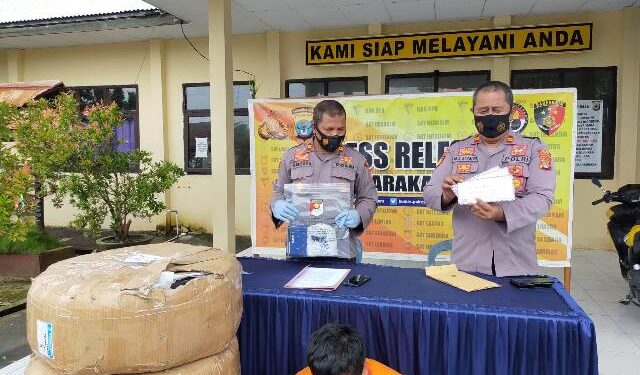 MS dan barang bukti diamankan di Mapolsek Tarakan Utara. (foto: jendelakaltara.co)