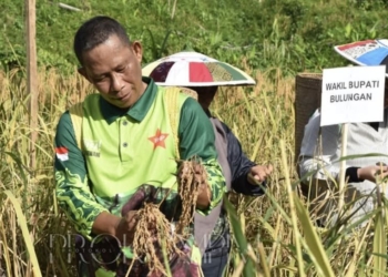 TANJUNG PALAS - Bupati Bulungan, Syarwani, S.Pd, M.Si dan Wakil Bupati (Wabup), Kilat, A.Md melaksanakan panen pagi gogo di wilayah ...