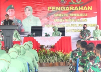 TARAKAN - Sebagai Komandan Korem 092/Maharajalila yang baru Brigjen TNI Rifki bersama Ketua Persit Koorcab Rem 092/Maharajalila Ny. Rita Fifki ...