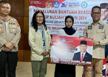 TARAKAN - Penyerahan beasiswa Program Indonesia Pintar (PIP) dan Kartu Indonesia Pintar (KIP) aspirasi dari senator asal Kaltara Hasan Basri, ...