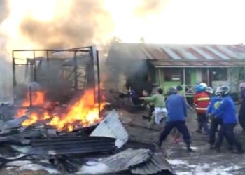 SEBATIK – Kebakaran melanda pemukiman penduduk, di Jembatan Perikanan Lama, Desa Sei Pancang, Kecamatan Sebatik Utara, Kabupaten Nunukan, Kalimantan Utara (Kaltara), Selasa ...