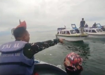 TARAKAN - Prajurit TNI AL turut serta dalam membantu jalanya evakuasi penumpang speedboat Bang Baron 02 di perairan Ulingan, Tanjung ...