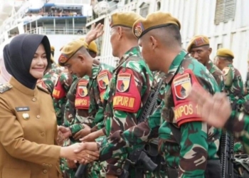 NUNUKAN - Bupati Nunukan, Hj. Asmin Laura Hafid, S.E, M.M, Ph.D melepas Satgas Pamtas RI-Malaysia, Batalyon Arhanud 8/MBC kembali ke ...