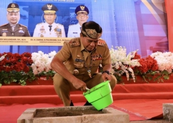 TANJUNG SELOR - Wakil Gubernur (Wagub) Kalimantan Utara (Kaltara), Ingkong Ala, S.E., M.Si melakukan prosesi peletakan batu pertama menandai dimulainya ...