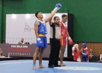 KUDUS - Dua petarung Kalimantan Utara (Kaltara) berhasil melaju ke babak semifinal cabang wushu Pekan Olahraga Nasional (PON) Bela Diri ...