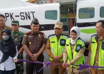 NUNUKAN – Bupati Nunukan Hj. Asmin Laura Hafid melaunching penerbangan perdana pesawat Susi Air rute Nunukan-Long Bawan pulang pergi (PP) ...