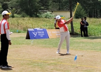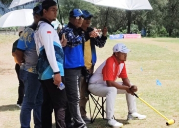 ACEH BESAR - Langkah Guntur Wardoyo melaju ke babak selanjutnya di nomor single stroke fairway cabang woodball Pekan Olahraga Nasional ...