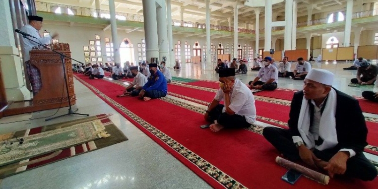 TARAKAN – Dewan Pengurus Korps Pegawai Republik Indonesia (Korpri) Tarakan kembali melaksanakan sholat dzuhur bersama dilanjutkan mendengarkan ceramah di Masjid Baitul Izzah, Islamic Center, Tarakan Timur, Rabu (27/4/2022).