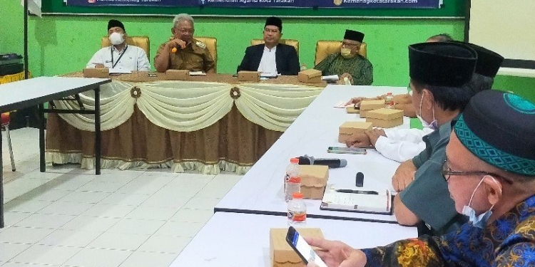 TARAKAN – Wakil Wali Kota Tarakan Effendhi Djuprianto menghadiri rapat Rukyatul Hilal penentuan awal bulan Ramadan dan penentuan kadar zakat fitrah Tahun 1443 Hijriyah/2022 Masehi di Aula Kantor Kementerian Agama Tarakan, Selasa (15/3/2022).